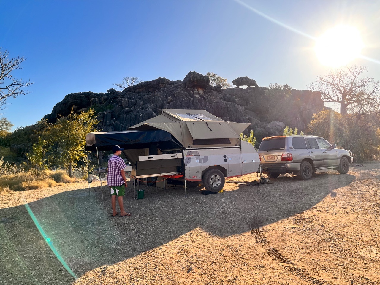The Conquests small, aerodynamic foot print allows it to sit in the slip stream of the tow vehicle, reducing fuel consumption. In addition the Conquest can get into some very tight areas, both out bush and in cities and towns. Its easy to park. On a concrete slab the camper can easily be pushed around by hand. Dimensions are compact — 1.9m across, 4m long, and 1.83m high.