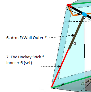 Arm front wall outer pole (set of 2) and front wall hockey stick inner pole (x1)