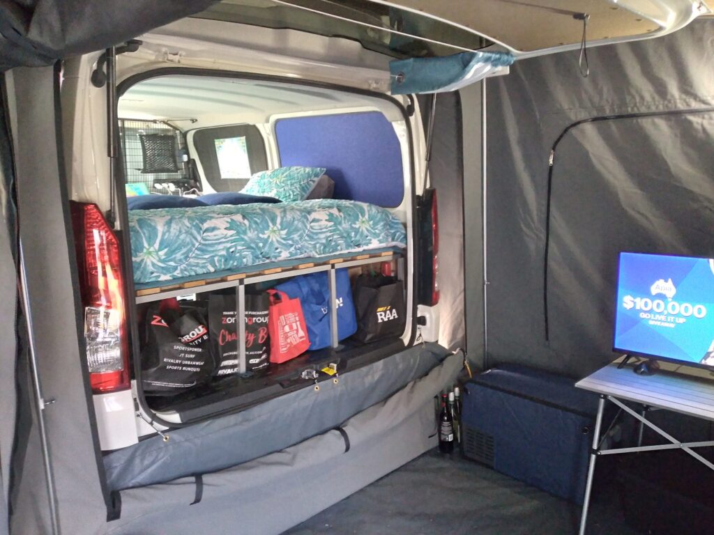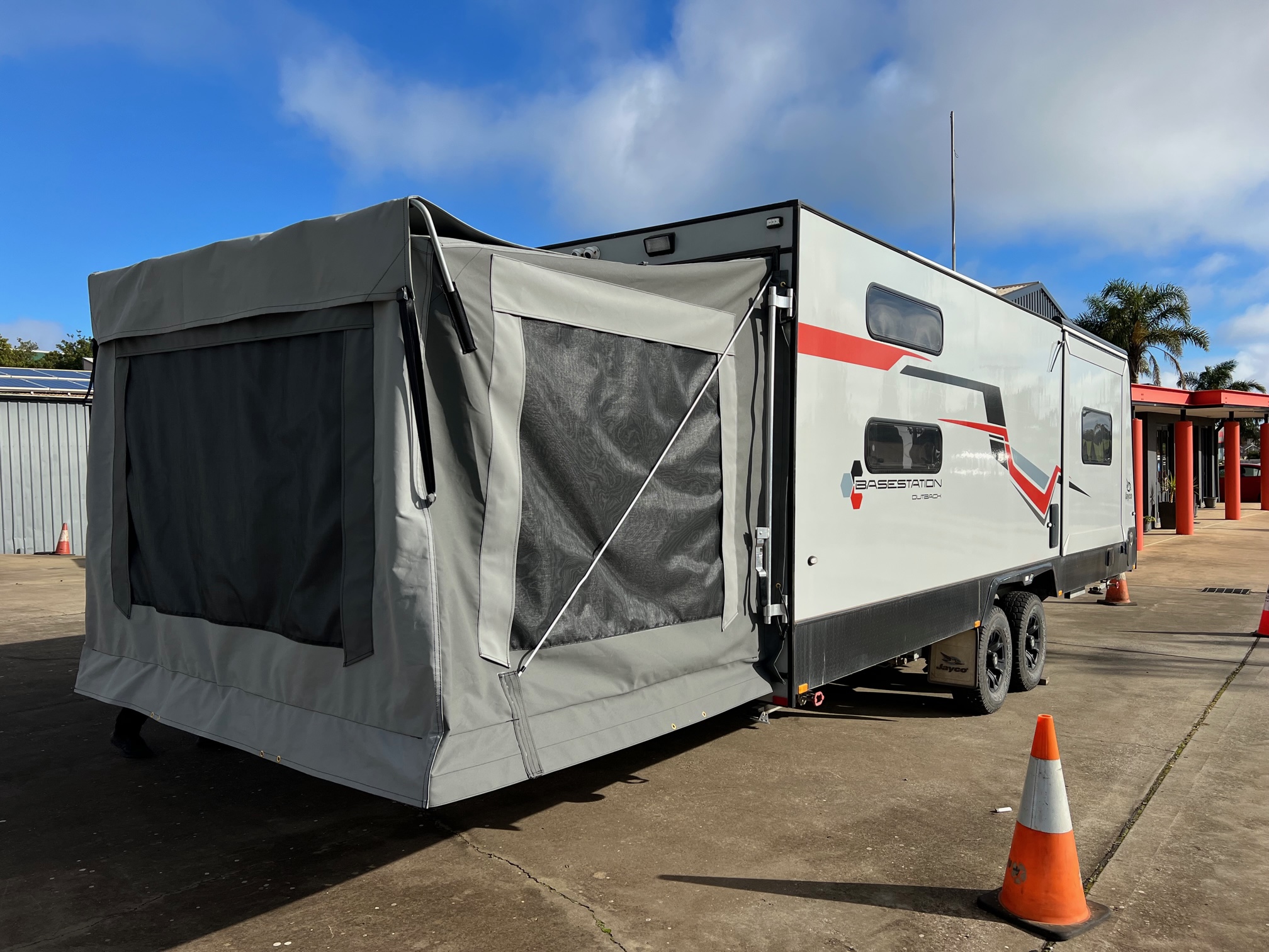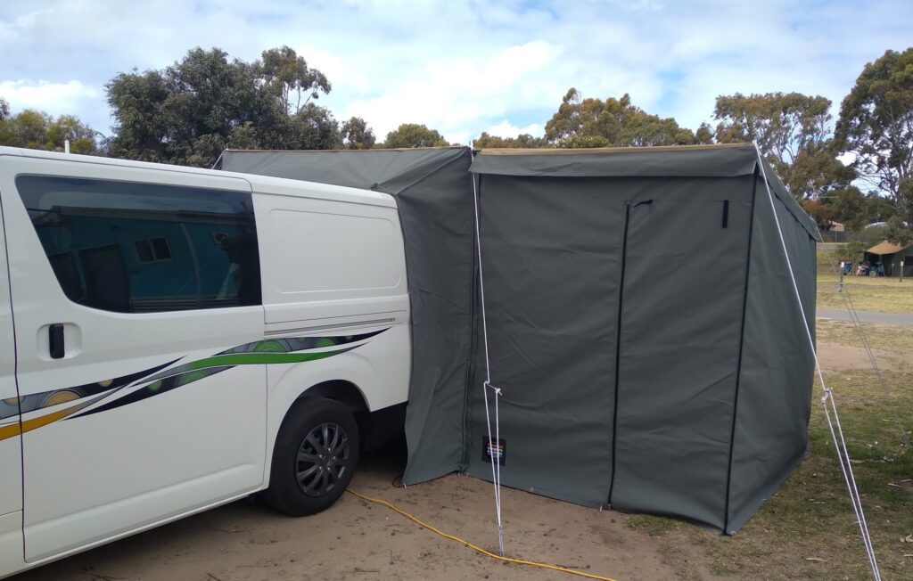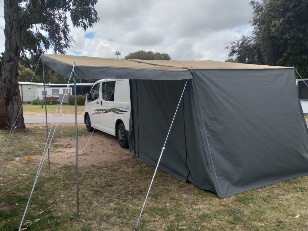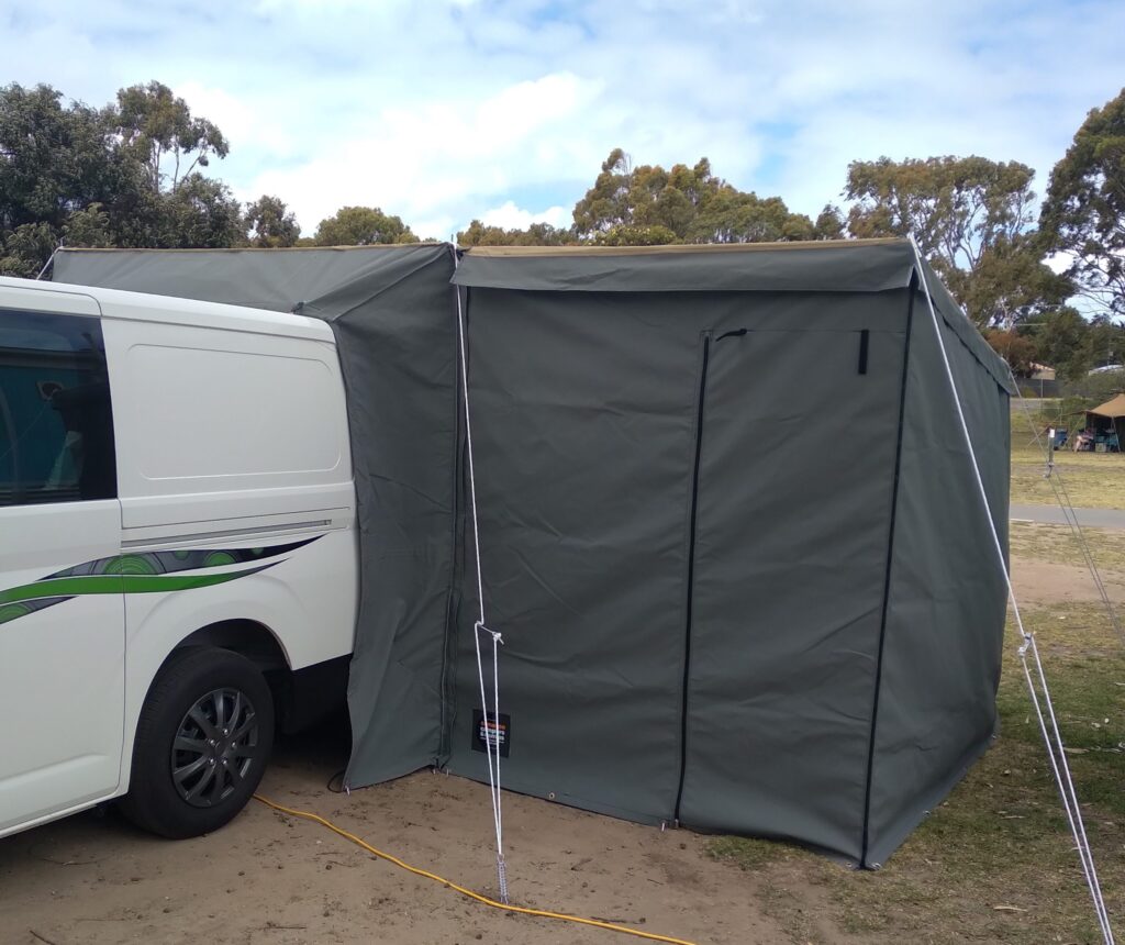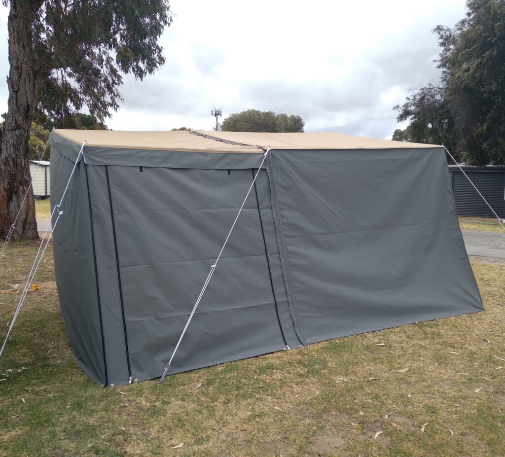 Need more room? We can custom make an tailgate tent to suit your RV. Comes in a range of colors. Call us today for a quote.